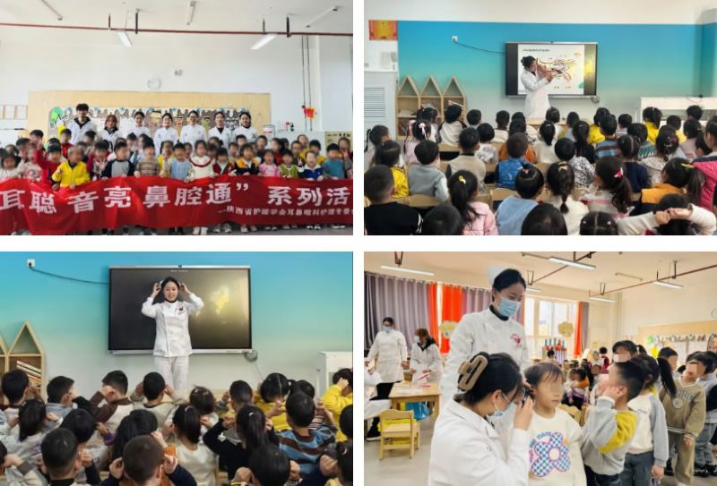 2月26日,耳鼻咽喉科馮丹醫(yī)生和張茹護(hù)師赴咸陽師范幼兒園開展了一場意義非凡的“愛耳日”義診活動,為孩子們的聽力健康保駕護(hù)航。針對幼兒活潑好動、好奇心強(qiáng)的情況,用動畫展示的形式為小朋友詳細(xì)講解了日常生活中如何保護(hù)耳朵。張茹護(hù)師現(xiàn)場帶領(lǐng)大家做“耳保健操”,課堂氣氛活躍,60余名師生積極參與。