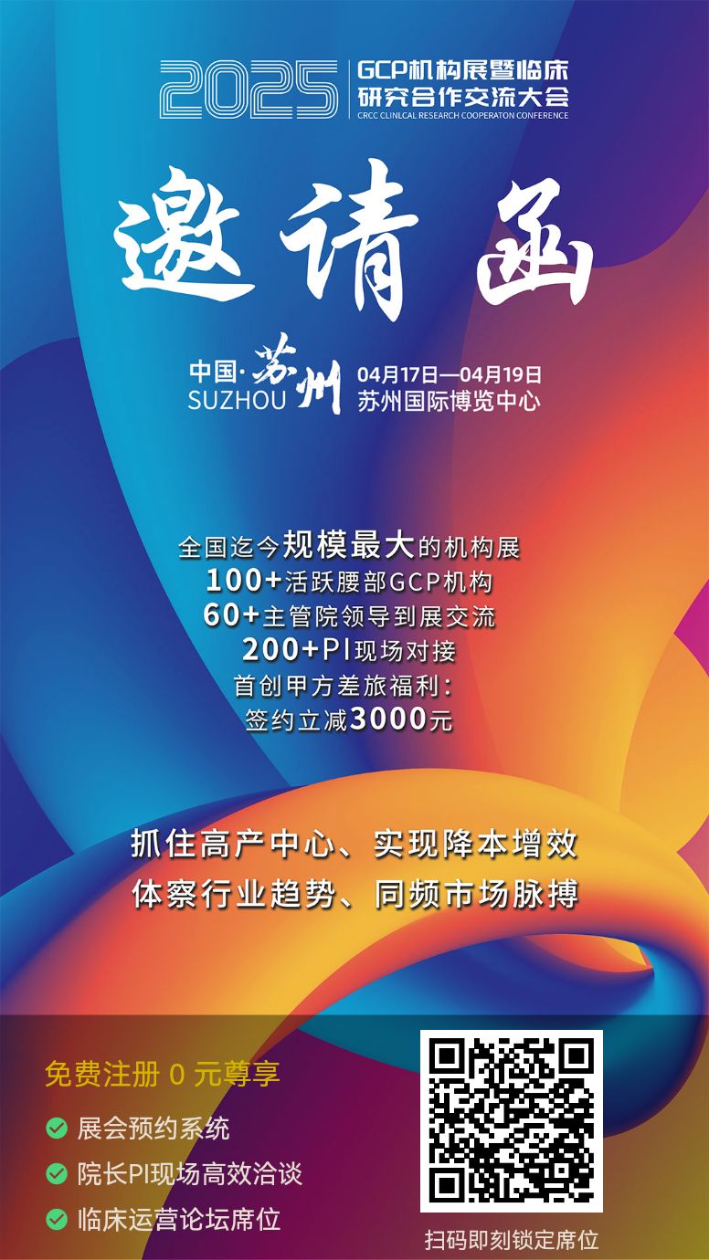 2025年GCP機(jī)構(gòu)展暨臨床研究合作交流大會(huì)(CRCC)更多詳情及報(bào)名鏈接