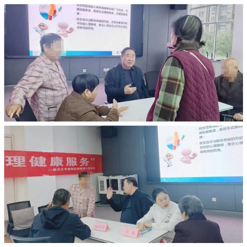 精神心理病院胡曉科副院長(zhǎng)帶領(lǐng)醫(yī)護(hù)團(tuán)隊(duì)于西咸新區(qū)底張街道幸福里社區(qū)黨群服務(wù)中心對(duì)前來咨詢的廣大群眾詳細(xì)地講解了引起心理健康問題的原因、癥狀、預(yù)防等各類知識(shí)。