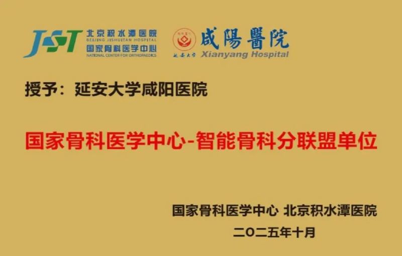 2025年10月18日,北京積水潭醫(yī)院(國家骨科醫(yī)學(xué)中心)正式授予延安大學(xué)咸陽醫(yī)院 “國家骨科醫(yī)學(xué)中心-智能骨科分聯(lián)盟單位”,骨科三病區(qū)李鵬主任前往參加聯(lián)盟授牌儀式。這標(biāo)志著我院骨科正式邁入以數(shù)字化、精準(zhǔn)化、微創(chuàng)化、人工智能為核心的智能化發(fā)展新階段,開啟智能骨科診療新時代。