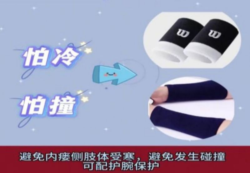 1.日常要注意內(nèi)瘺側(cè)肢體的保暖,可佩戴寬松的棉質(zhì)護(hù)腕帶或護(hù)肘,避免過(guò)緊影響血液循環(huán)。
